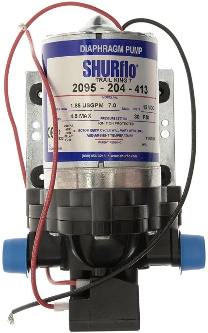 The Shurflo Trail King pump operates automatically on demand.